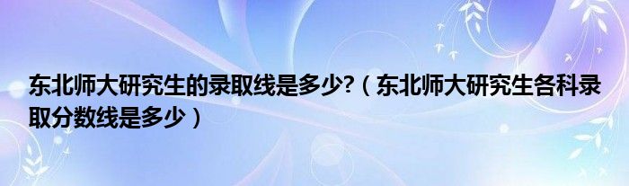 关于东北师大研究生的录取线是多少?,东北师大研究生各科录取分数线是多少这个很多人还不知道,今天菲菲来为大家解答以上的问题,现在让我们一起来看看吧!