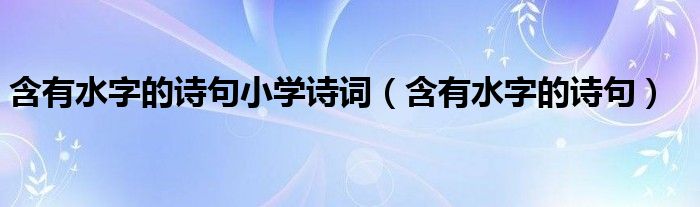 大家好,小晋来为大家解答以下问题,关于含有水字的诗句小学诗词,含有水字的诗句很多人还不知道,今天让我们一起来看看吧!