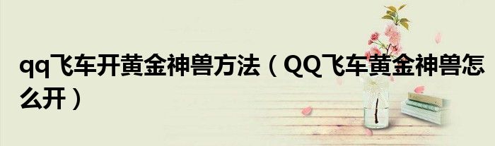 关于qq飞车开黄金神兽方法,QQ飞车黄金神兽怎么开这个很多人还不知道,今天菲菲来为大家解答以上的问题,现在让我们一起来看看吧!