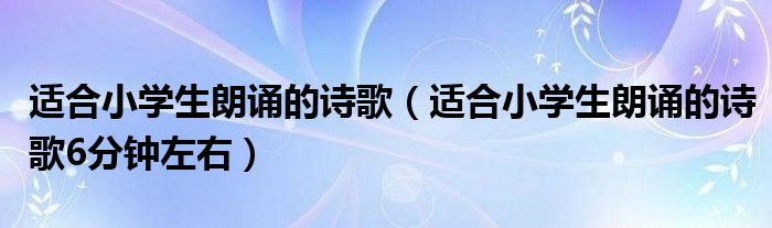关于适合小学生朗诵的诗歌,适合小学生朗诵的诗歌6分钟左右这个很多人还不知道,今天菲菲来为大家解答以上的问题,现在让我们一起来看看吧!