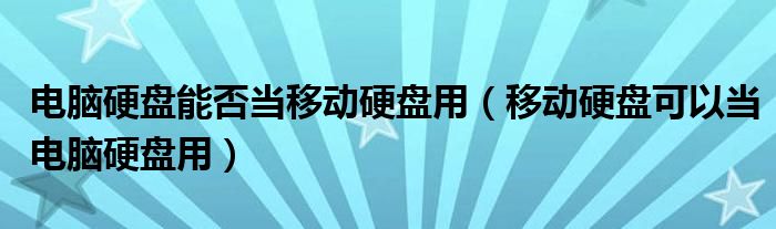 关于电脑硬盘能否当移动硬盘用,移动硬盘可以当电脑硬盘用这个很多人还不知道,今天菲菲来为大家解答以上的问题,现在让我们一起来看看吧!