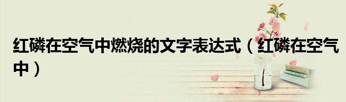 关于红磷在空气中燃烧的文字表达式,红磷在空气中这个很多人还不知道,今天菲菲来为大家解答以上的问题,现在让我们一起来看看吧!