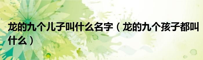 关于龙的九个儿子叫什么名字,龙的九个孩子都叫什么这个很多人还不知道,今天菲菲来为大家解答以上的问题,现在让我们一起来看看吧!