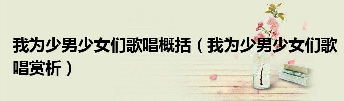 关于我为少男少女们歌唱概括,我为少男少女们歌唱赏析这个很多人还不知道,今天菲菲来为大家解答以上的问题,现在让我们一起来看看吧!