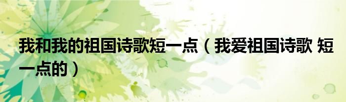关于我和我的祖国诗歌短一点,我爱祖国诗歌 短一点的这个很多人还不知道,今天菲菲来为大家解答以上的问题,现在让我们一起来看看吧!