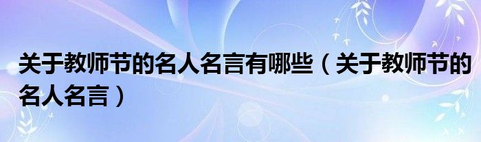 关于关于教师节的名人名言有哪些,关于教师节的名人名言这个很多人还不知道,今天菲菲来为大家解答以上的问题,现在让我们一起来看看吧!