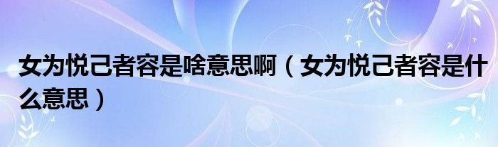 关于女为悦己者容是啥意思啊,女为悦己者容是什么意思这个很多人还不知道,今天菲菲来为大家解答以上的问题,现在让我们一起来看看吧!