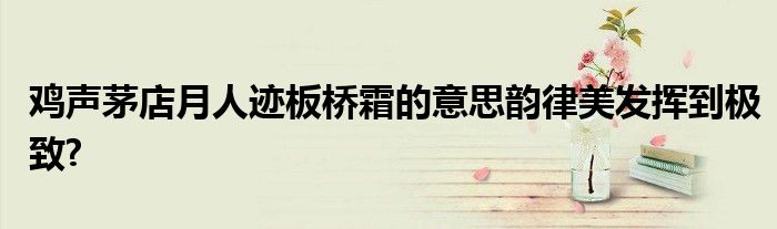 关于鸡声茅店月人迹板桥霜的意思韵律美发挥到极致?这个很多人还不知道,今天菲菲来为大家解答以上的问题,现在让我们一起来看看吧!