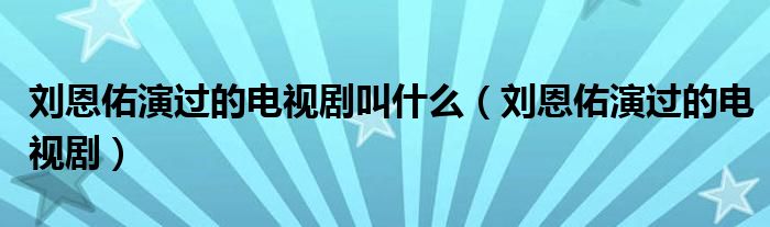 刘恩佑演过的电视剧叫什么(刘恩佑演过的电视剧)