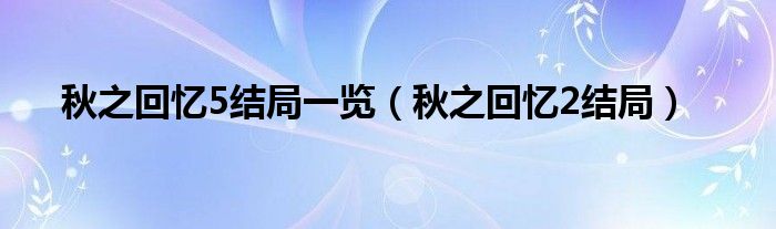 秋之回忆5结局一览(秋之回忆2结局)