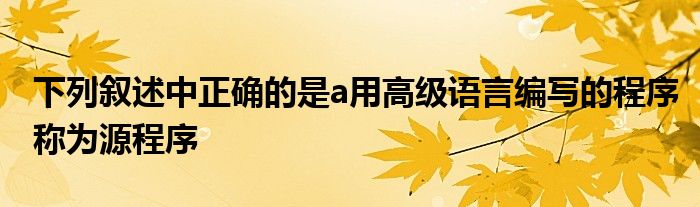 关于下列叙述中正确的是a用高级语言编写的程序称为源程序这个很多人还不知道,今天菲菲来为大家解答以上的问题,现在让我们一起来看看吧!