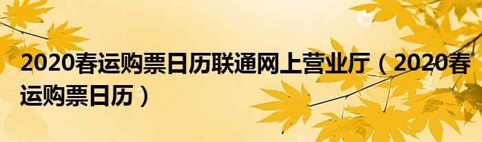 2020春运购票日历联通网上营业厅,2020春运购票日历很多人还不知道,乐乐来为大家解答以上问题,现在让我们一起来看看吧!