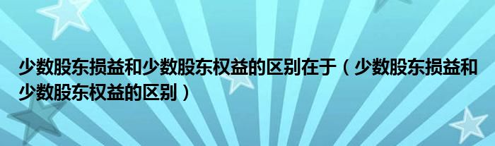 关于少数股东损益和少数股东权益的区别在于,少数股东损益和少数股东权益的区别这个很多人还不知道,今天菲菲来为大家解答以上的问题,现在让我们一起来看看吧!
