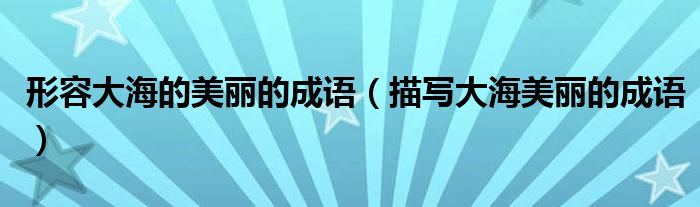 关于形容大海的美丽的成语,描写大海美丽的成语这个很多人还不知道,今天菲菲来为大家解答以上的问题,现在让我们一起来看看吧!