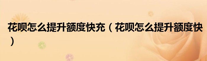大家好,小晋来为大家解答以下问题,关于花呗怎么提升额度快充,花呗怎么提升额度快很多人还不知道,今天让我们一起来看看吧!