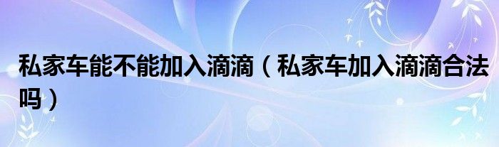 大家好,小晋来为大家解答以下问题,关于私家车能不能加入滴滴,私家车加入滴滴合法吗很多人还不知道,今天让我们一起来看看吧!