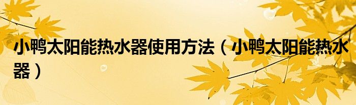 小鸭太阳能热水器使用方法,小鸭太阳能热水器很多人还不知道,乐乐来为大家解答以上问题,现在让我们一起来看看吧!