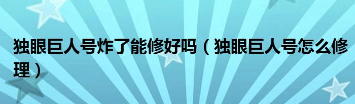 大家好,小晋来为大家解答以下问题,关于独眼巨人号炸了能修好吗,独眼巨人号怎么修理很多人还不知道,今天让我们一起来看看吧!