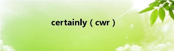 关于certainly,cwr这个很多人还不知道,今天菲菲来为大家解答以上的问题,现在让我们一起来看看吧!
