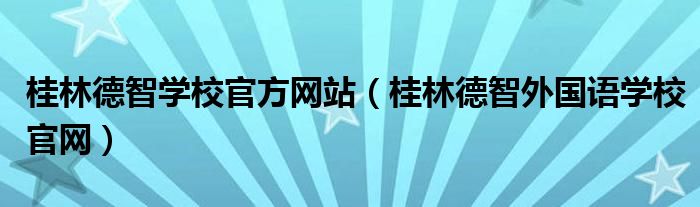 关于桂林德智学校官方网站,桂林德智外国语学校官网这个很多人还不知道,今天菲菲来为大家解答以上的问题,现在让我们一起来看看吧!