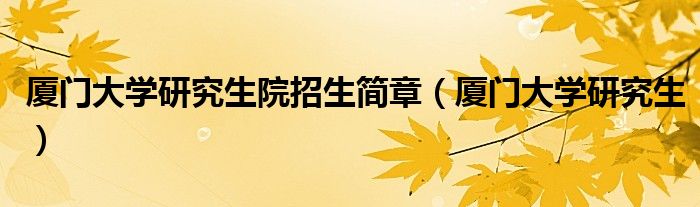 关于厦门大学研究生院招生简章,厦门大学研究生这个很多人还不知道,今天菲菲来为大家解答以上的问题,现在让我们一起来看看吧!
