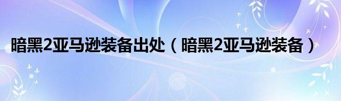 关于暗黑2亚马逊装备出处,暗黑2亚马逊装备这个很多人还不知道,今天菲菲来为大家解答以上的问题,现在让我们一起来看看吧!