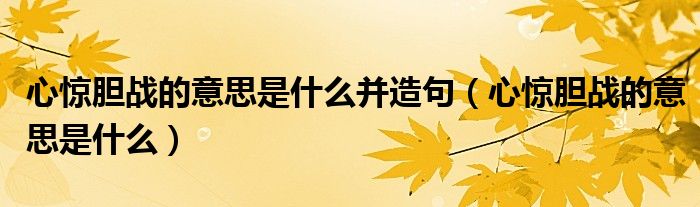 关于心惊胆战的意思是什么并造句,心惊胆战的意思是什么这个很多人还不知道,今天菲菲来为大家解答以上的问题,现在让我们一起来看看吧!