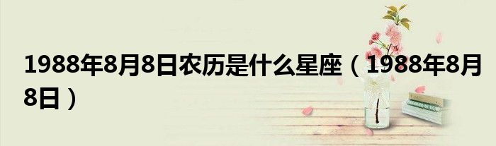 关于1988年8月8日农历是什么星座,1988年8月8日这个很多人还不知道,今天菲菲来为大家解答以上的问题,现在让我们一起来看看吧!