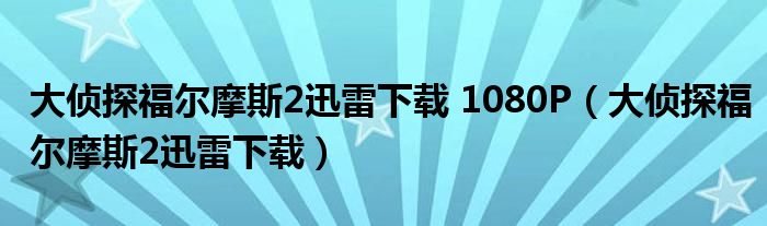 大侦探福尔摩斯2迅雷下载 1080P(大侦探福尔摩斯2迅雷下载)