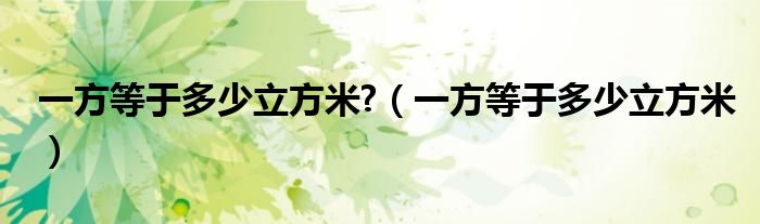 关于一方等于多少立方米?,一方等于多少立方米这个很多人还不知道,今天菲菲来为大家解答以上的问题,现在让我们一起来看看吧!